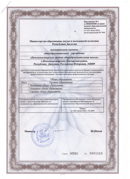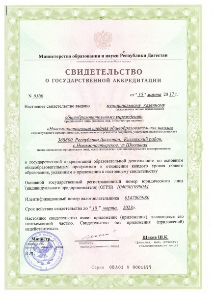 Адрес местонахождения образовательной организации* 368809, Кизлярский район РД село Новомонастырское ул. Школьная 26